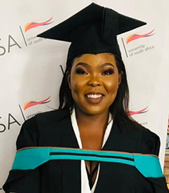 According to Dlamini, Unisa opened doors for her, and established her in the teaching field. As a distance learning entity, the university offered her the opportunity to work while studying, and to complete her teaching practice. She is grateful to her Unisa lecturers and the groups in Telegram for their invaluable and sustained support. In her view, Unisa is the best distance institution in the world, consistently producing quality graduates.