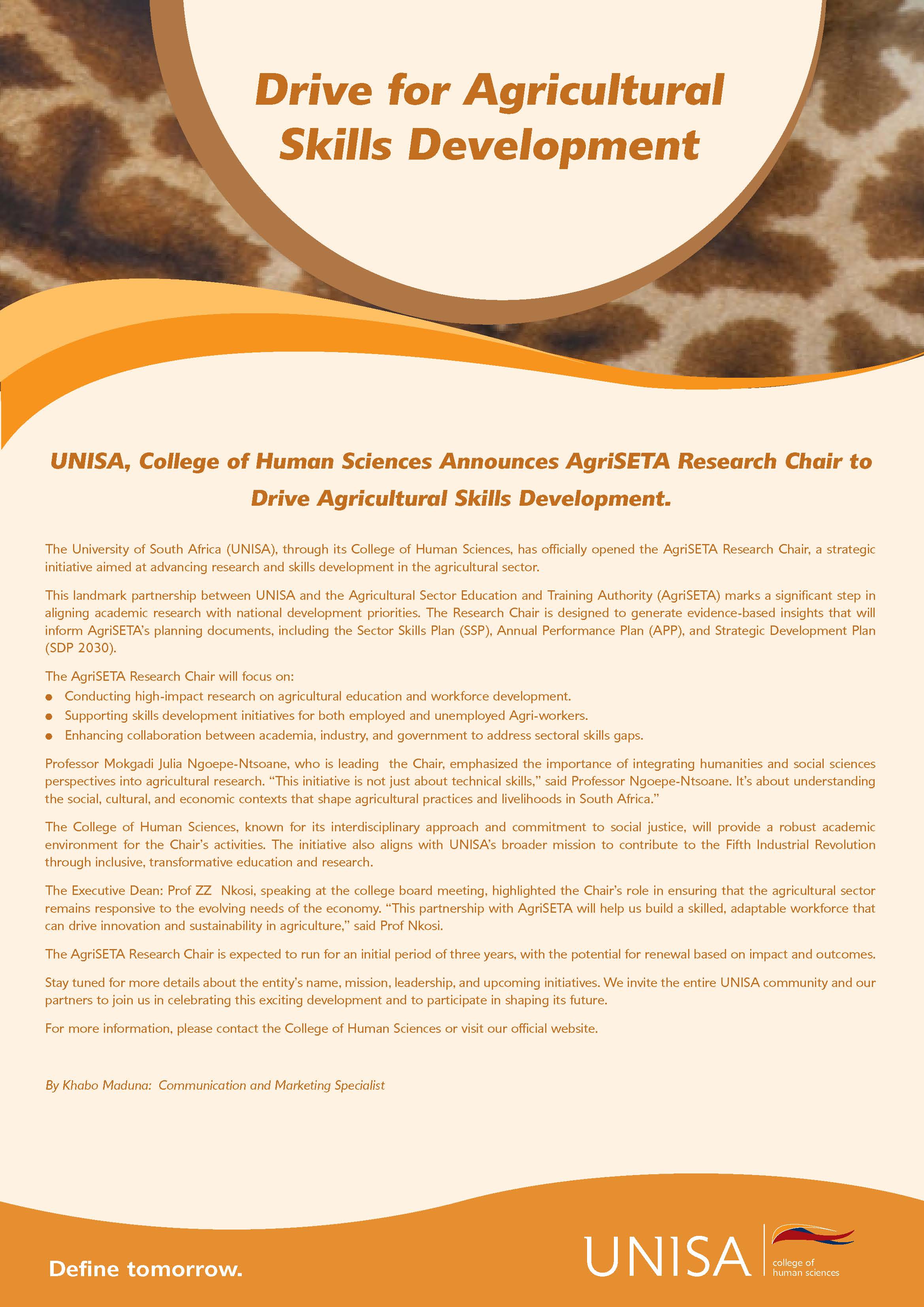 AgriSETA Research Chair to Drive Agricultural Skills Development