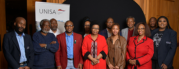 Front from left: Khutso Mashiloane (Education & Training Officer: NSRC), Prof Muxe Nkondo (Unisa Council Member), Dr Moses Hlongoane (Acting Executive Dean: College of Accounting Sciences), Prof Puleng LenkaBula (Unisa Principal and Vice-Chancellor), Tokollo Mmamaro (Sports Officer: NSRC), Prof Mpine Makoe (Acting Executive Dean: College of Education) & Shatadi Phoshoko (Secretary-General: NSRC)
