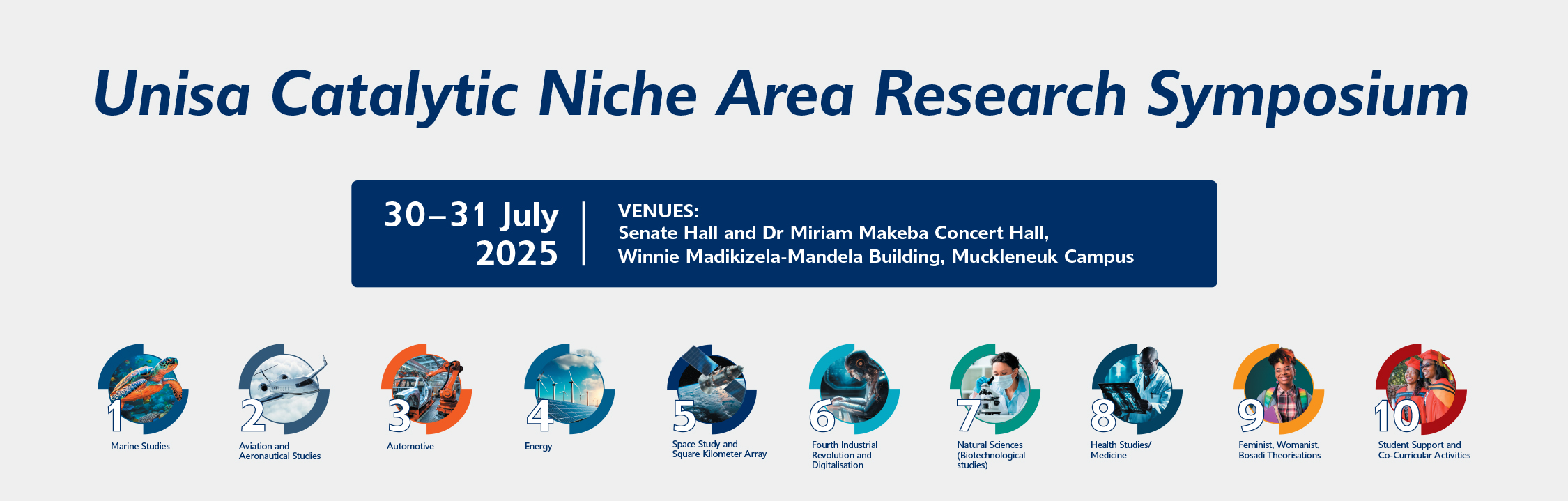 The 10 CNA’s enhance academics' experiences as engaged scholars who care to address the diverse needs of our society in South Africa, Africa and the globe. The 2025 Unisa Catalytic Niche Area Research Symposium will provide an interactive platform for a robust conversation between academia, industry, government and civil society.
