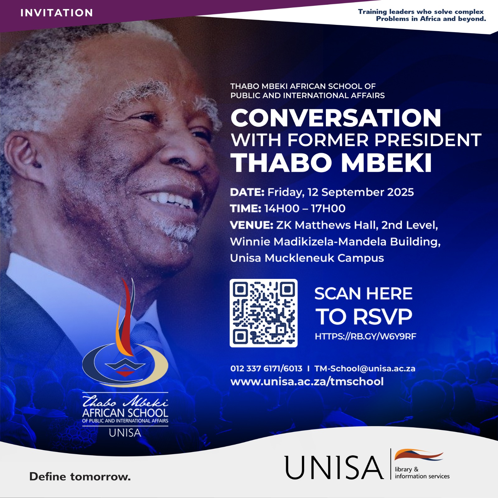 The Thabo Mbeki Foundation and the University of South Africa invite you to the International Women’s Day Dialogue taking place on the 8th of March at The Forum, Bryanston.