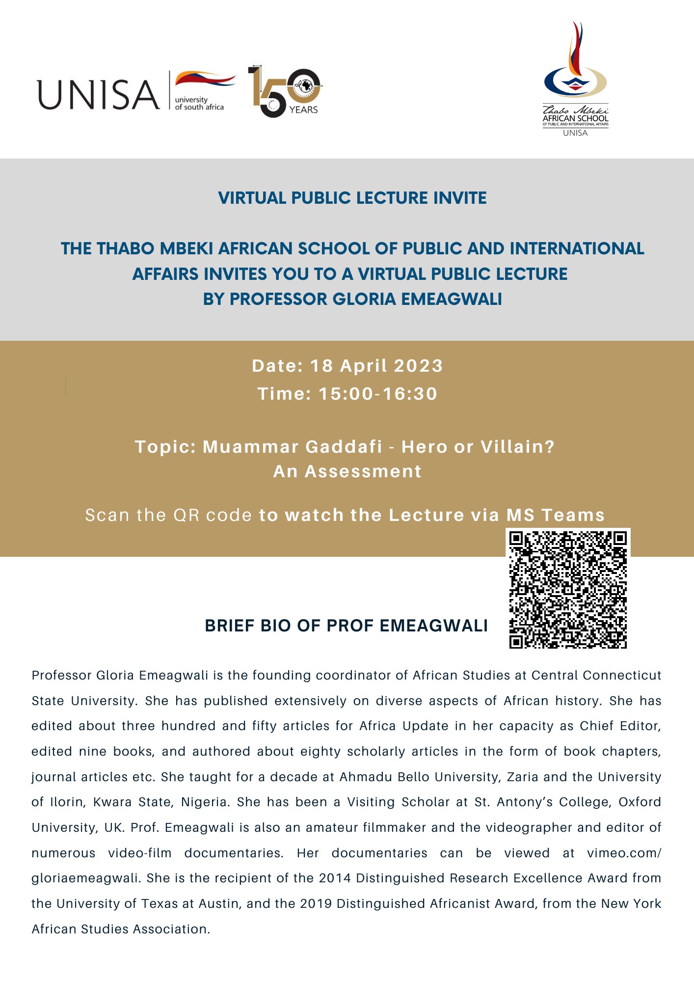 Virtual Public Lecture: Muammar Gaddafi - Hero or Villain? An Assessment