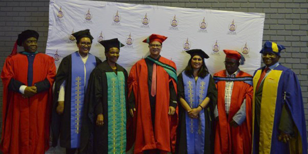 On the first graduation day, Dean Collin Langeveldt was conferred a PhD in Education Leadership and Management. Unisa also celebrated the sterling job of a cohort of cum laude students and a handful of students who completed their studies against all odds and passed with distinctions.