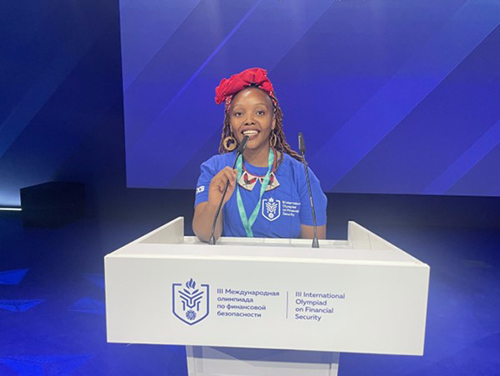 Raising the Unisa flag high as the only South African female student selected to compete at the III International Olympiad on Financial Security