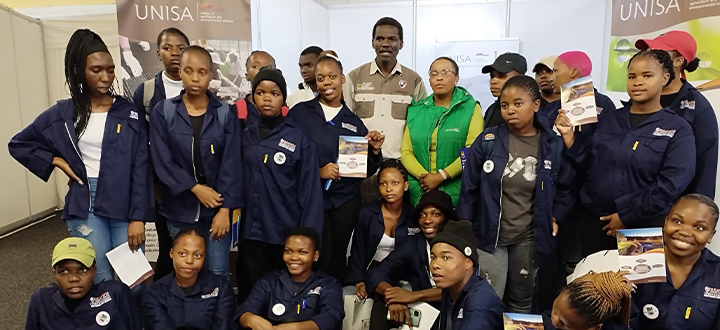 Learners at the Unisa marketing stand