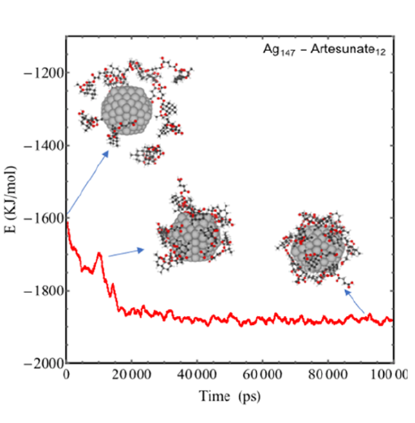 Figure 2: Interaction energies (vdW) between artemisinin, artemether, and artesunate and the silver nanoparticles, highlighting how intense their binding is to the silver surface.