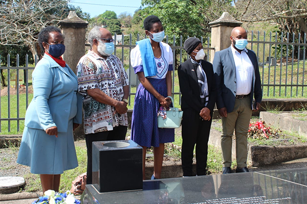 At the graveside ceremony: Veli Luthuli (daughter-in-law of Chief Albert Luthuli), Important Mkhize (Luthuli Museum council chair), Prof Puleng Segalo (incumbent of the Chief Albert Luthuli Research Chair at Unisa), Dr Albertina Luthuli (eldest daughter of Chief Albert Luthuli) and Dr Mxolisi Mchunu (deputy chairperson of the Luthuli Museum council)