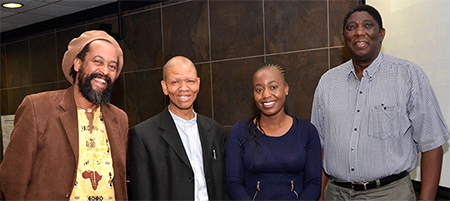 Pictured at the seminar: Advocate Sipho Mantula (Researcher: Institute for Dispute Resolution in Africa), Prof Kealeboga Maphunye (Incumbent: WIPHOLD-Brigalia Bam Chair in Electoral Democracy in Africa), Vhulenda Mukheli (Department of Political Sciences, Unisa), and Dr Martin R Rupiya (Associate Professor, IARS).