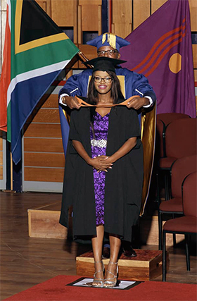 It was very hard for me to study through an open distance learning university because life is demanding; if not careful, one can forget to prioritise Unisa, especially because no-one is after you. You become your own pillar. So it’s good to surround yourself with like-minded people who want the best for you. To remind you about the finishing line. I say big ups to Unisa employees such as Miss Motsaidi Zitha, who played a major role in keeping me motivated for the last leg of my F1 concession for my module, "The Explanation of Crime". And my friend, Simphiwe Leshabane, another Unisa alumnus, who is my cheerleader.