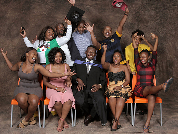 Unisa graduate and SRC member Lindani Nkomo with some of his fellow and former student leaders