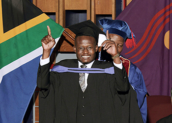 A smile of triumph as Lindani Nkomo receives his Bachelor of Commerce in Law degree from Unisa on 12 March 2020.