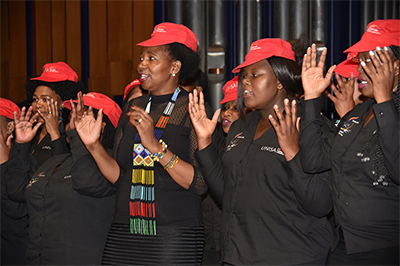 Eleanor Sisulu, daughter-in-law of Albertina and wife of son Max, made special mention of the Unisa Choir’s special compositions and moving performance. She said that 2018 also marks the 70th anniversary of the creation of the Declaration of Human Rights. ‘We have had many human rights challenges on our continent,’ said Sisulu, ‘and Mama Sisulu and Nelson Mandela were prominent in building a human rights culture. These two leaders respected human rights in both word and deed. They had a deep respect for the rights of all, especially the most vulnerable members of our society.’