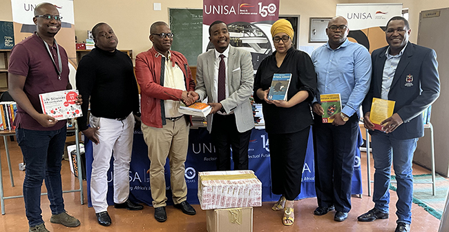 Unisa Library, Counselling Unit, and Communications Department collected books throughout the year from various internal and external stakeholders. The visit to the school was an opportunity for Monica Mkhwanazi, a Unisa Student Counselling Mentor who initiated this library project, to meet and wish matriculants good luck for their 2023 final examinations.