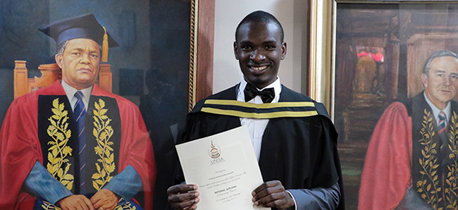 ‘Patrick Malesu’s success story should serve as an example to other students that nothing can stand up against hard work and determination in achieving one's academic ambition and career goals,’ says Professor Bhekie Mamba, Executive Dean of Unisa’s College of Science, Engineering and Technology. ‘Furthermore, it shows that the quality of learning materials, lecturers' inputs and student support provided by the college ensured that an enabling environment for Malesu to learn was in place and responsive.’