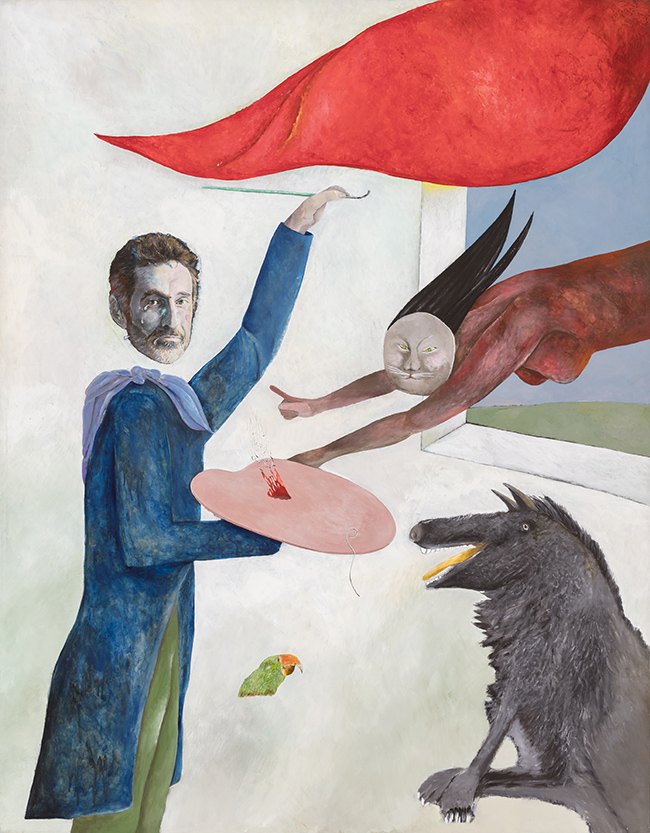 The 81 ways of letting go a late self consists largely of works on canvas painted over the last few years, in addition to a few earlier paintings of similar scale and subject matter, such as Autoportrait masqué (1990), which combines a self-portrait with the recurring motifs of the window and the bird. The most recent painting in the show is also the largest – Light dream (2018) is a 300 x 120cm canvas, painted in the Spanish summer that reflects on love and loss. In addition to the paintings, the exhibition includes a selection of five Gongshi drawings (2017), named after the Chinese tradition of scholar’s rocks, as well as a selection of smaller works on paper ranging in date from 1970 to 2012.