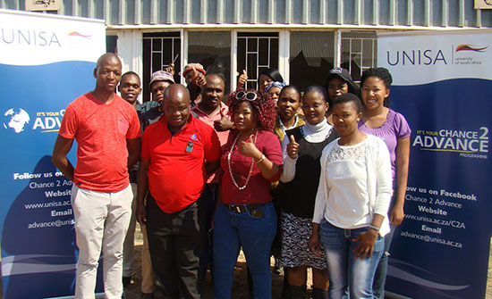 Chance 2 Advance: Unisa academics advance Diepsloot’s Health and Business skills The Chance 2 Advance programme built a robust relationship with stakeholders in the community of Diepsloot. Unisa academics have been serving the community through involvement with Chance 2 Advance since 2012. Communities are empowered with critical knowledge to improve their circumstances, while academics discover fresh insight on social challenges and explore new research problems emerging in the community.
