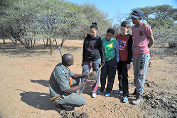 Sidney introducing a group of youngsters to the wonders of the veld
