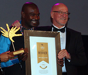 Sidney receiving the award from Derek Hanekom, Minister of Tourism